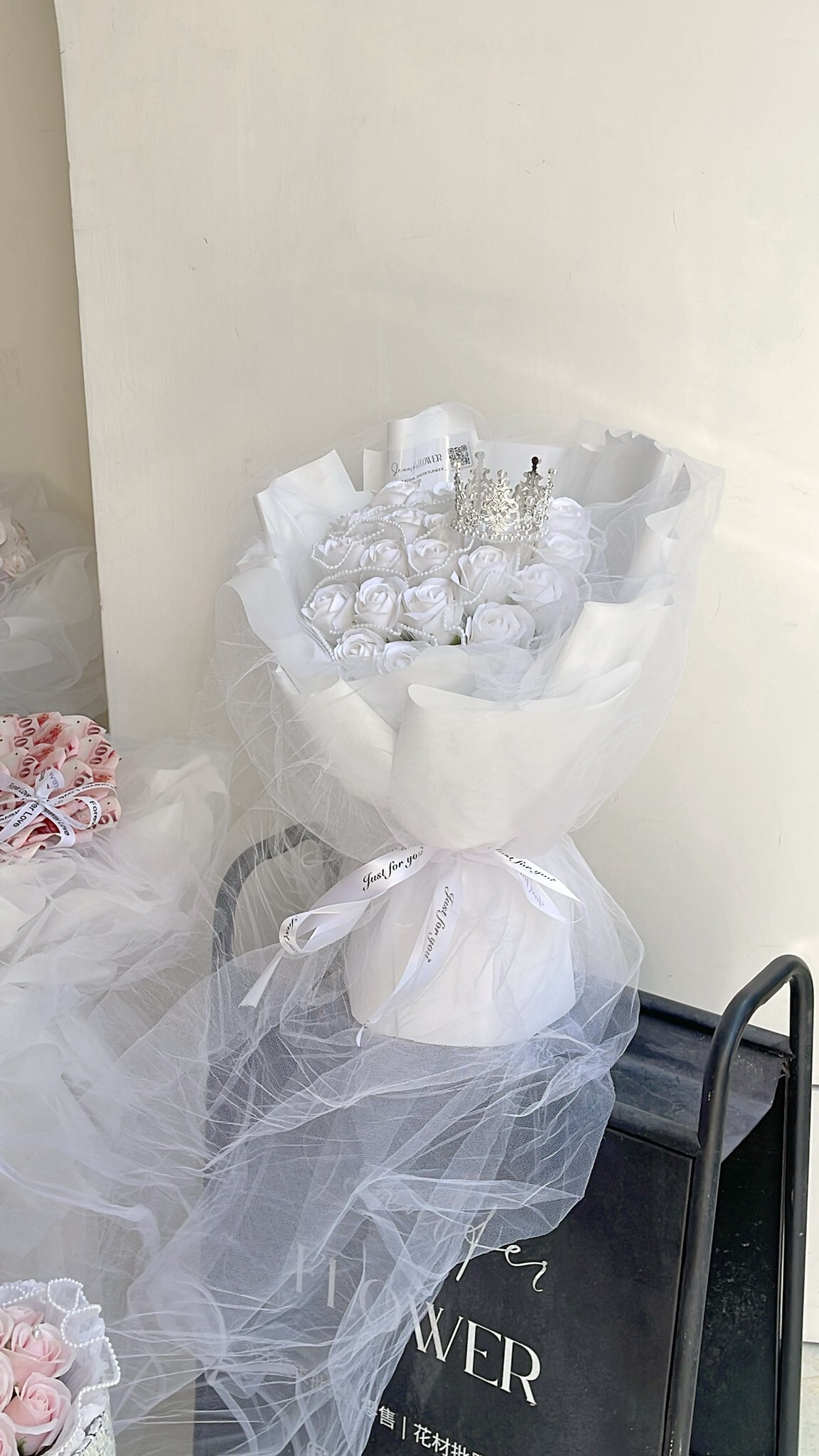 20朵 香皂花 黑包裝紙 花束型