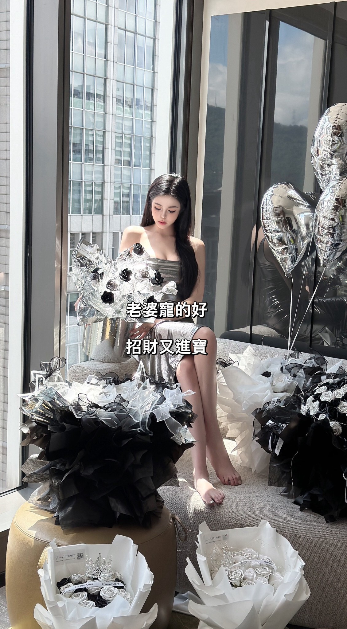 33朵黑+鍵變黑 黑銀包裝 銀色芭蕾緞帶 桃園店