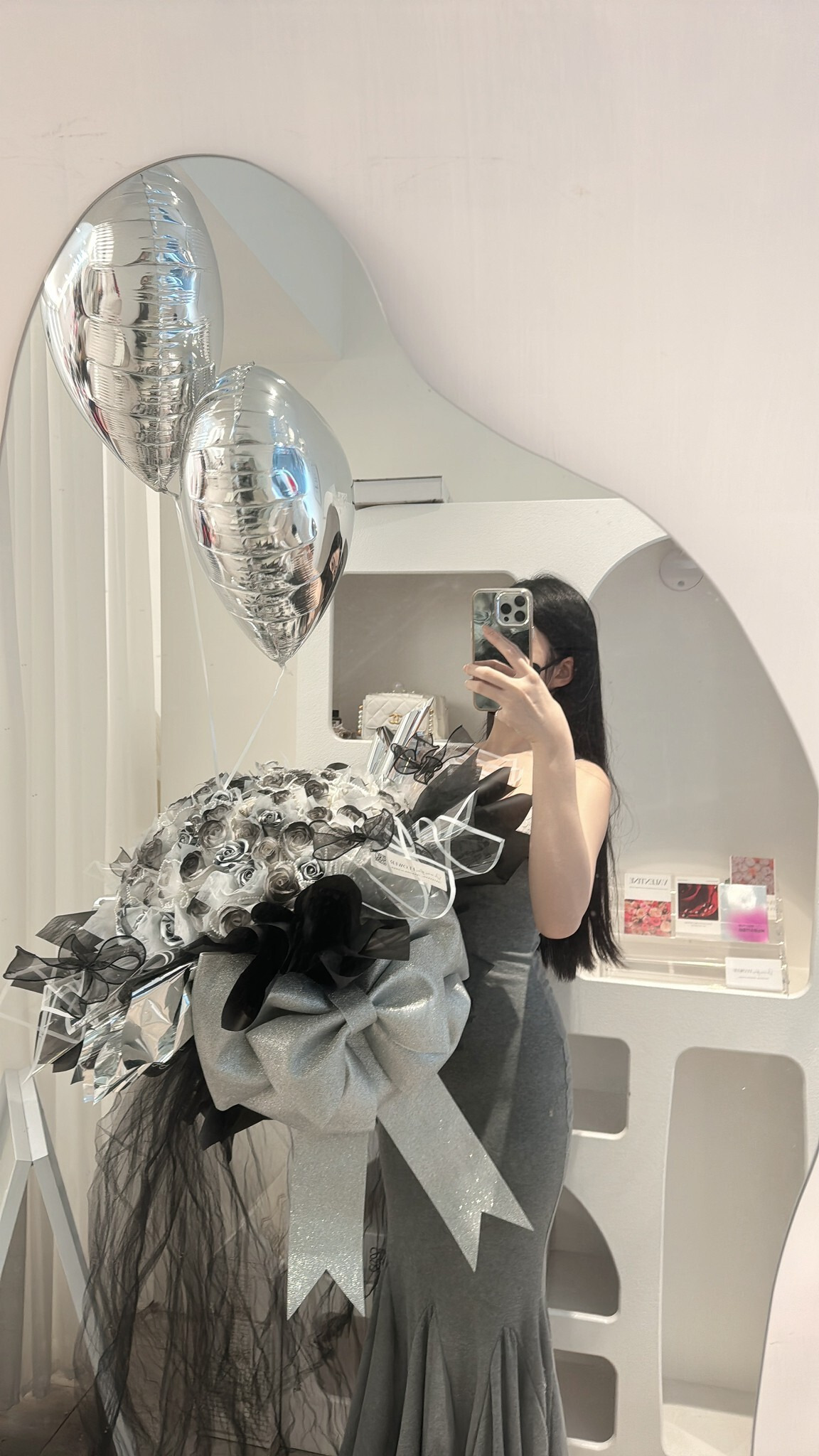 黑銀系列 浪漫氣球背板佈置 搭配雲朵鏡