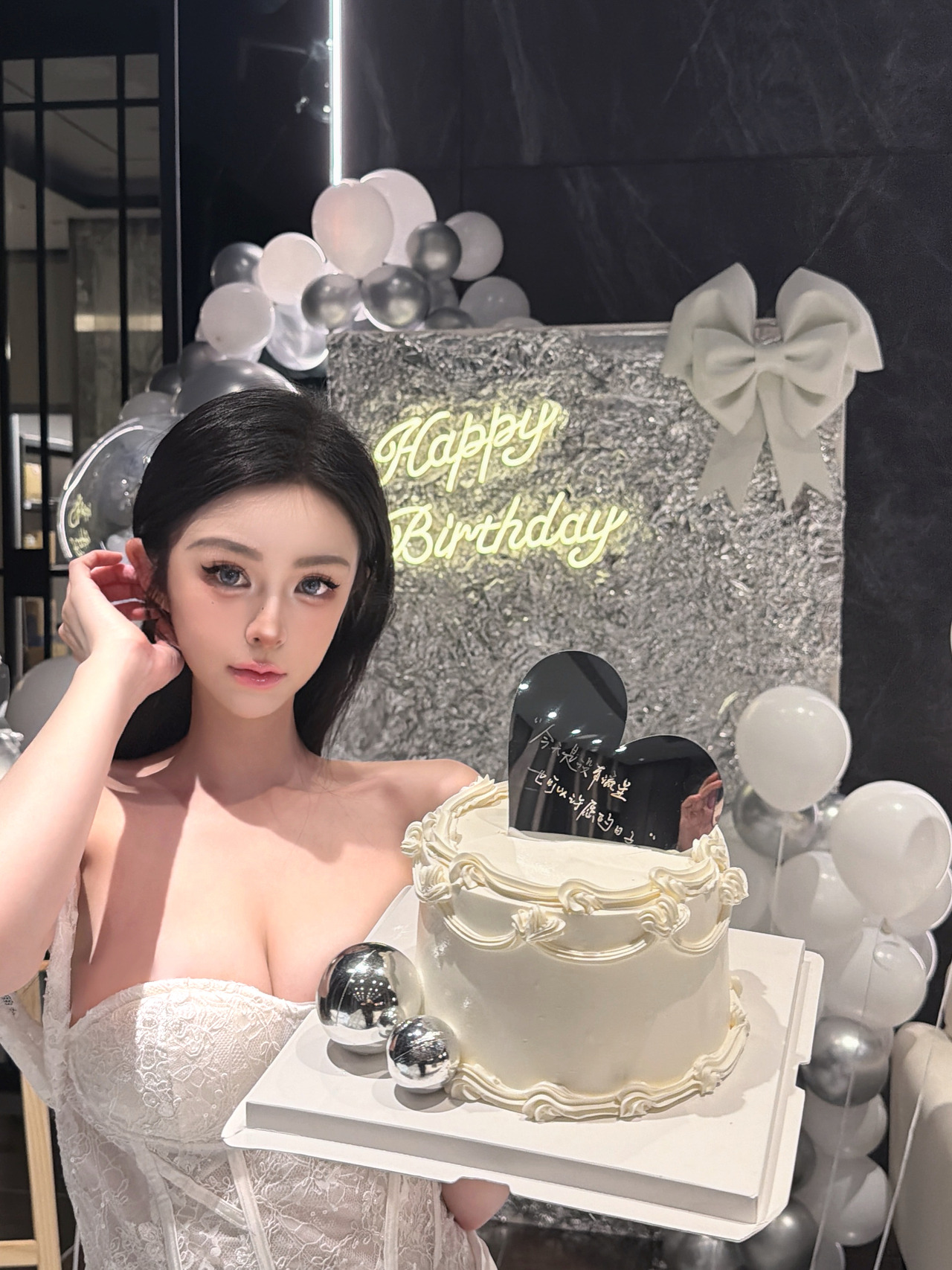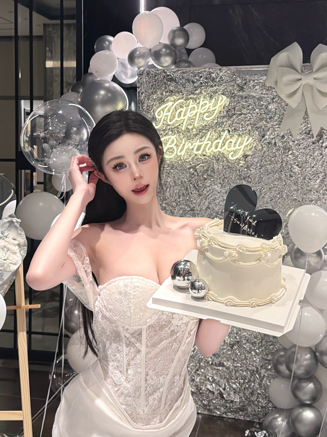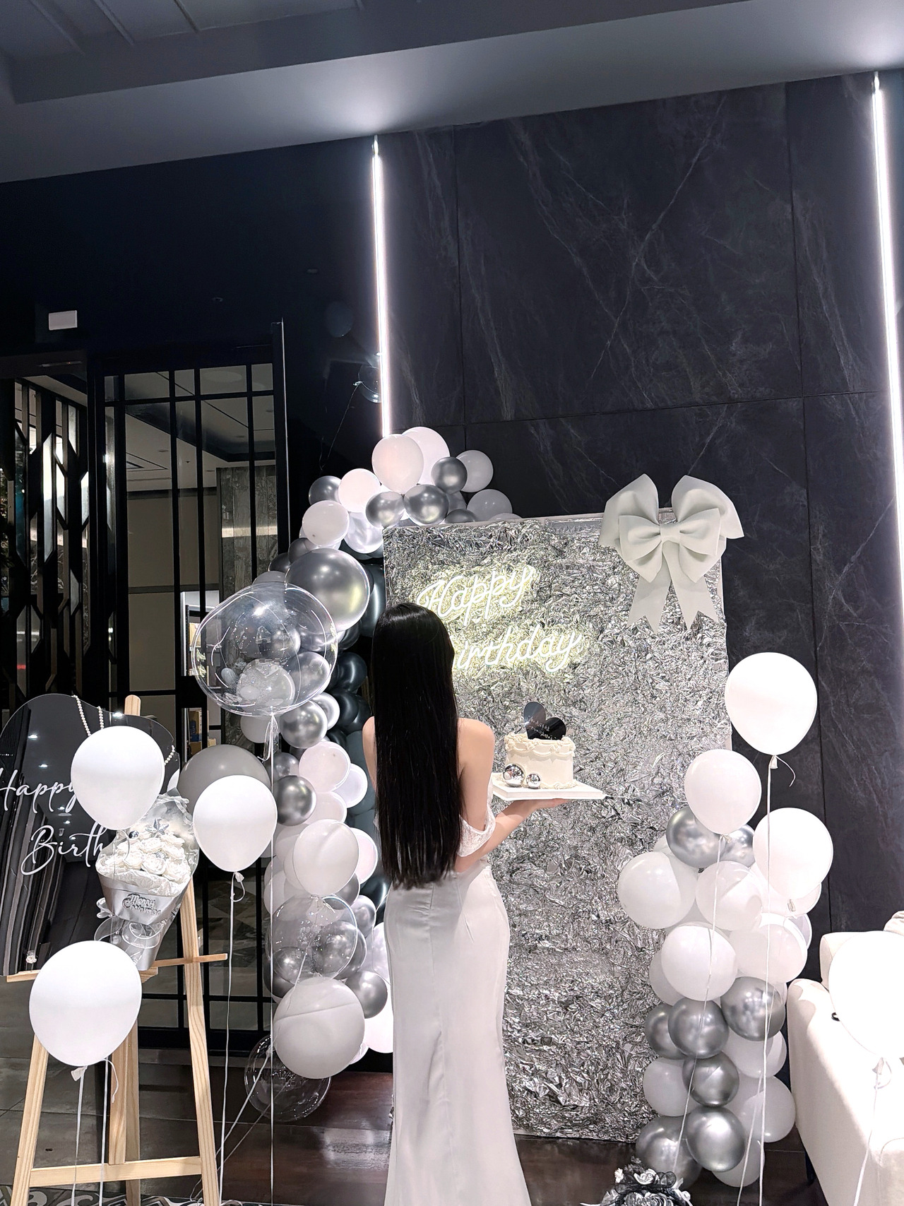 黑銀系列 浪漫氣球背板佈置 搭配雲朵鏡